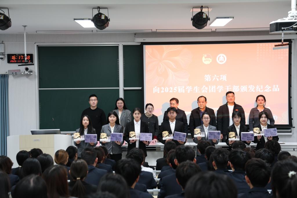 学生会代表暨2024-2025学年“青马工程”培训班优秀学员代表发放了校园文创纪念品,并向注册送彩金