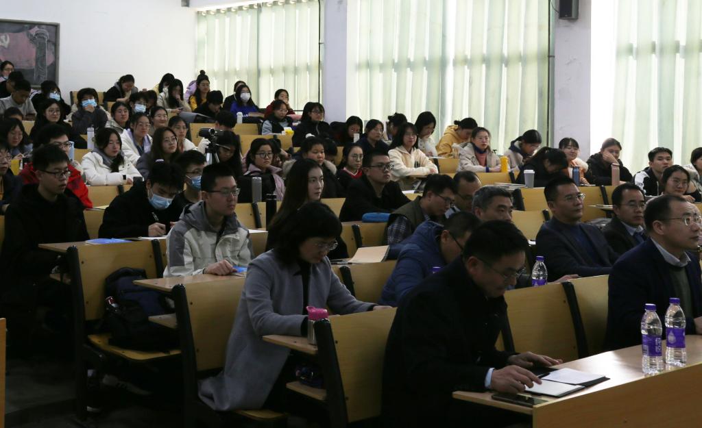 1998届优秀校友、青岛市教育科学研究院高中数学教研员、齐鲁名师李现勇教授针对两位同学的展示进行了精彩的点评,并与现场同学们进行了互动交流。第二阶段,李现勇教授为大家做了《教育新时代背景下师范生面临的挑战与对策》报告,对师范生在大学阶段应该具备的师德修养、知识、技能和素养做了详细的阐释。