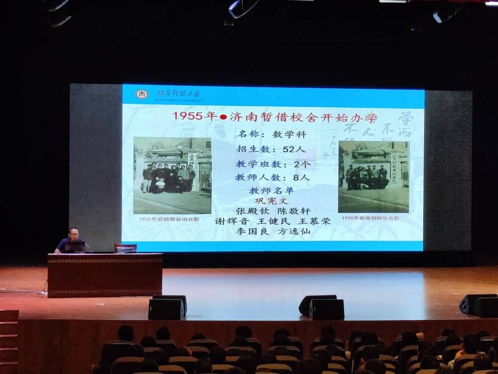 2023级新生回望了六十七载曲园数学记忆。他从筚路蓝缕的办学历程、引以为傲的公社数学、兼容并包的学术交流、不忘初心的发展壮大四个方面介绍了学校数学学科的发展历程。从1956年的“建立次年曲阜安,北上南下忙招贤”到1972年的“复旦赠送一零三,如获至宝日夜伴”,再到如今的数学与应用数学专业首批入选国家级一流本科专业建设点和信息与计算科学专业入选山东省一流本科专业建设点,许勇军通过对注册送彩金