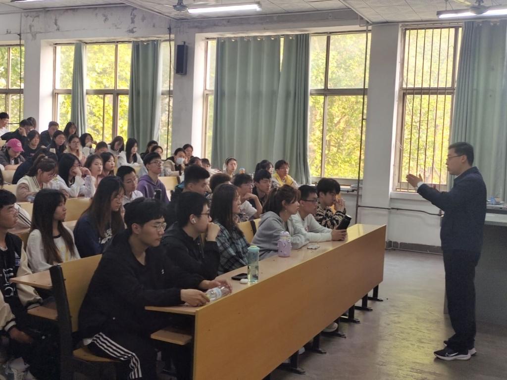 党委副书记曲凤东结合案例,从毒品的来源、可能接触到的途径、毒品吸食后的各种危害等方面向学生们做了深入浅出地知识普及,并告诫学生们一定要远离毒品、珍爱生命。同时,通过播放禁毒视频,引导学生们更加深刻地感受毒品对人类的危害。