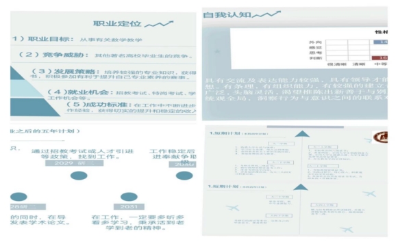本次比赛共分为成长赛道和就业赛道,同学们踊跃报名,积极参加。比赛过程中,参赛选手利用霍兰德职业兴趣测试、SWOT分析法等科学方法进行深度解读,围绕自我认知、职业认知、实践活动、评估反馈等方面陈述个人求职意向和职业准备情况,展示规划路线。赛后,评委老师们依据规划完整性、可行性、展示效果等效果对参赛选手的作品依次进行点评,在肯定选手闪光点的同时给予相关意见和建议,帮助同学们不断提高水平,精进自我。最终,根据选手表现推荐三位同学至学校继续参加复赛。