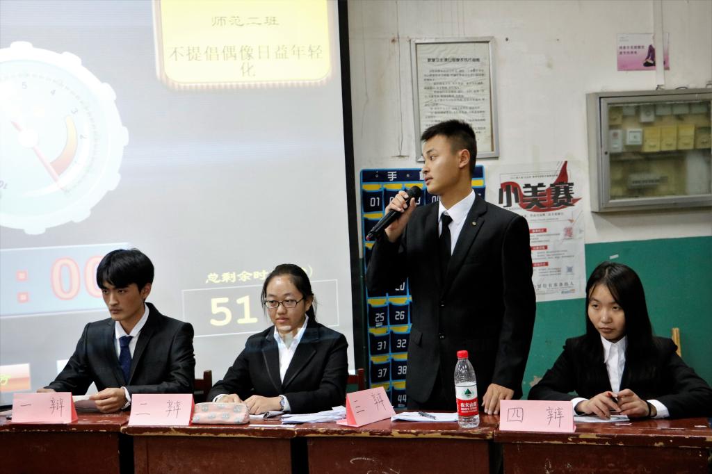 预赛共分为四场举行,比赛伊始,现场就进入了激烈的争辩。辩手们针对本论题进行辩论,阐明本方观点,语言简练,铿锵有力,同时也仔细分析对方观点,寻找漏洞,反驳对方观点。自由辩论环节更是将比赛再次推向了高潮,观众对辩手们的表现也给出了高度的肯定,掌声不断。经过辩论双方激烈的唇枪舌战,本次预赛落下帷幕,评委对各辩手的精彩表现做出点评,并评选出每轮的最佳辩手。最终免师班、非师一班、师范二班、师范一班脱颖而出,进入复赛。