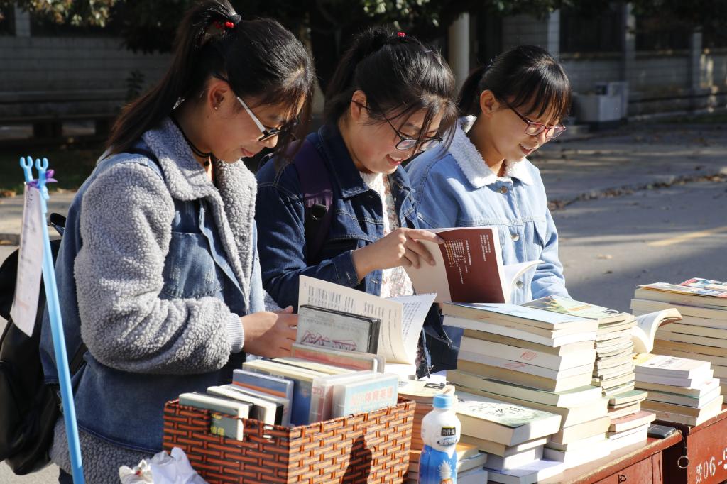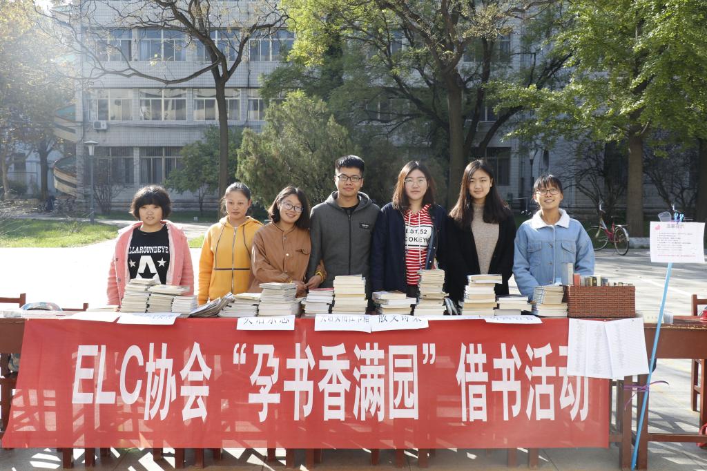 团委主办,ELC协会承办的“点点墨香,孕书香满园”英文书籍借阅交流活动在数学教学楼前举办,吸引了大量同学驻足参与。