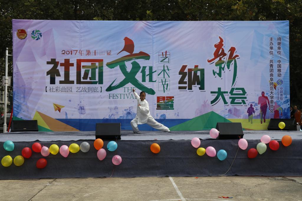10月14日,曲阜师范大学2017年社团纳新活动在北篮球场隆重举行。今年的“百团大战”活动采用以舞台为中心,社团分区安置的布局,加之空中的彩带和气球使整个会场的气氛异常的活跃。活动过程中,各社团纷纷大显身手,为同学们带来了独具社团特色的表演,其中,轮滑社的同学们表演了障碍滑、跳板滑等花样轮滑,动漫社的同学们装扮成各种动漫人物,还原了各种动漫情节,整个会场热闹非凡。新生们热情高涨,在各社团成员的热情细心的介绍下,同学们积极加入了自己感兴趣的社团。注册送彩金