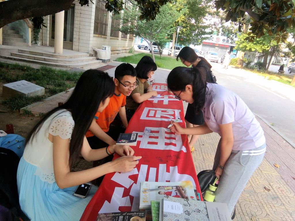 于5月25日在数学教学楼前举办了“筹曲园书屋,创温馨团风”捐书公益活动,15级于16级部分同学参加了此次活动。