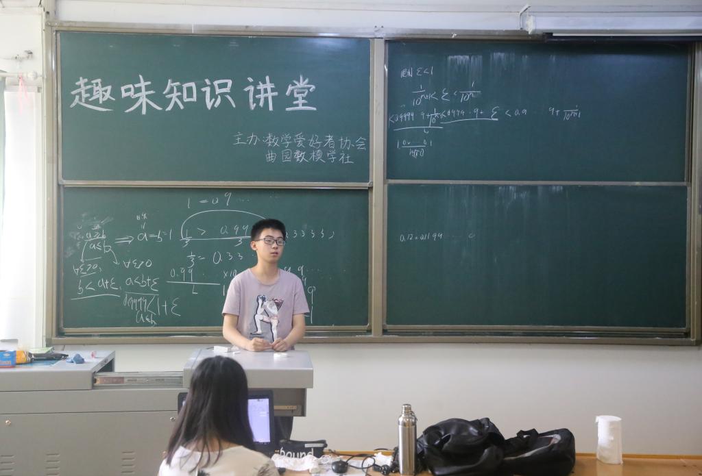 6月2日下午,数学趣味知识讲堂在教学楼201成功举行。优秀学生代表段风霜、赵文华以及程富伟担任主讲人,来自全院的数学爱好者参加本次活动。