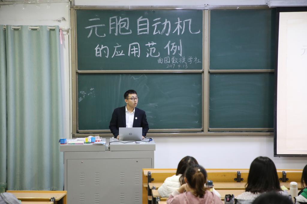 团委和学生社团联合会主办的“走进数模——元胞自动机的应用范例”讲座在教学楼201教室成功举办。曲园数模学社丁一鸣为大家进行讲解。
