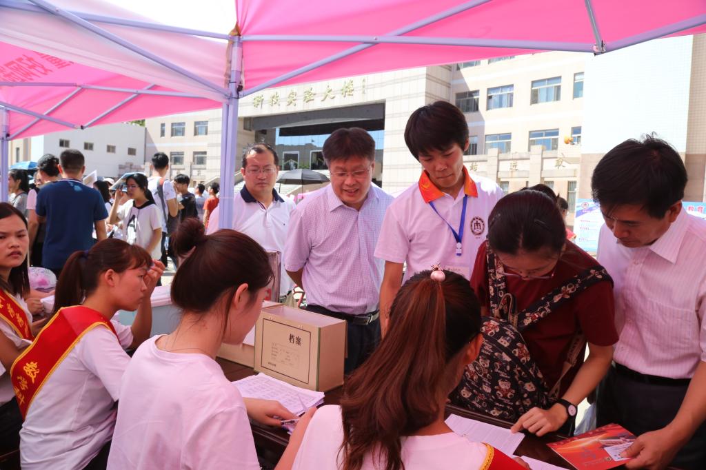 在各迎新接站点提供接站服务并在孔子文化广场设立了学生接待处和家长休息区,系楼前也专门安排学生志愿者,他们以最饱满的热情和最周到的服务,共迎接免费师范生、数学与应用数学(师范)、数学与应用数学(非师范)、信息与计算机科学四个专业方向共计484名新生,其中男生150人,女生334人。