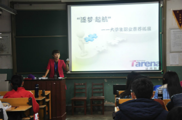 辅导员郅艳梅,达内集团人力资源部培训总监邢玫和达内集团驻曲阜师范大学老师张佩出席了讲座。邢玫总监担任本次讲座的主讲师。