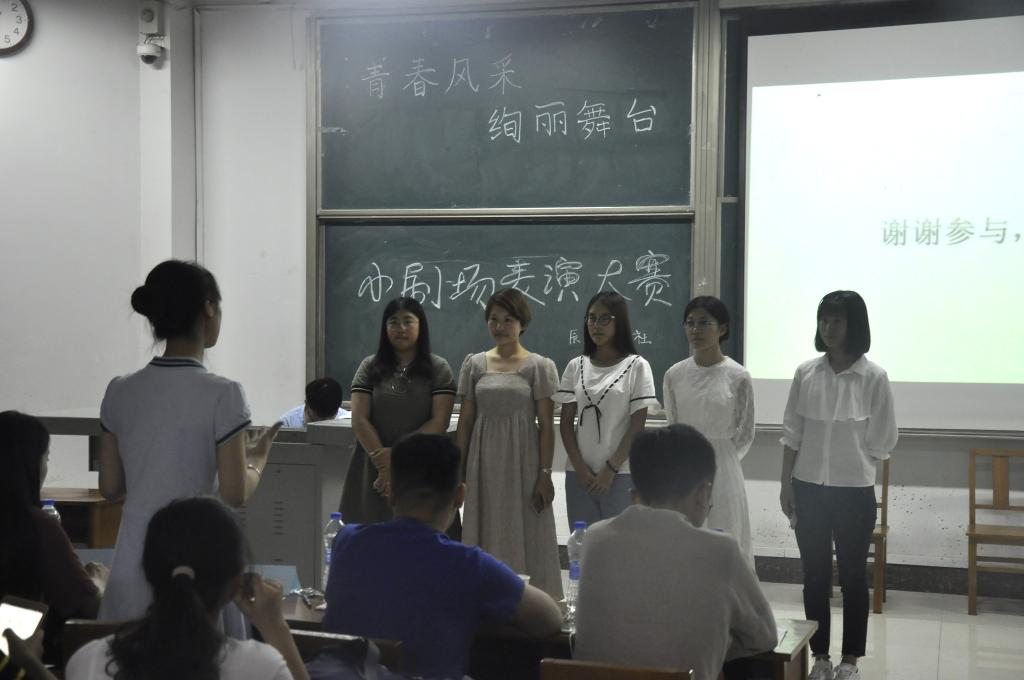 在简洁风趣的开场白后,活动正式拉开帷幕,话剧爱好者们喜聚一堂,用自己精彩的演技,诠释了对角色的理解,对表演的热爱。表演过程中同学们从容自若,落落大方,全身心地投入剧情,诙谐幽默的动作,引得在场观众忍俊不禁。其中,由吕晓,刘晨,李梦瑶等人表演的小品《十年后的她们》故事情节完整,表演形式新颖,得到了在场观众的一致好评,夺得此次比赛的第一名。