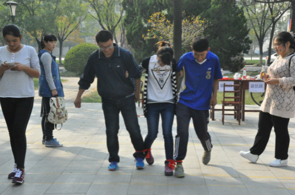 团委组织实施的一项融知识性、趣味性、健身性于一体的大型赛事活动,它对曲阜师范大学全体在校大学生展开。比赛囊括了齐心协力、投筷子、叠硬币、筷子夹玻璃球、自行车慢骑、单脚站立头顶书、跳绳、转书、顶扫把、背靠背挤气球跑、瞎子过桥等二十一个项目,种类繁多,考察的能力更是各种各样。活动现场,参加比赛的同学络绎不绝,更有一些校友旁观了比赛,欢声笑语不断,处处充满了青春与活力的活动现场,令他们想起了自己的学生时代,更勾起了他们对母校的深深眷恋。而参与了以考察团体合作默契为主的"齐心协力"项目的同学们纷纷表示通过这个游戏深切感受到了合作的重要性,并坦言在今后的生活和学习中定会更加注意合作,实现共赢,留给自己丰富、圆满的大学生活。