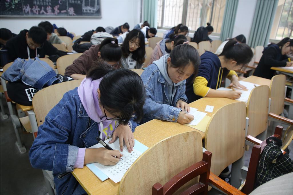 团委主办的第二届“杏坛杯”三笔字大赛初赛在数学楼举行,此次比赛以“翰墨书写华章,共创魅力曲园”为主题,2017级和2018级共近一百名同学参与此次活动,学习部部长崔可凡,新媒体部部长魏书悦等学生干部担任比赛评委。