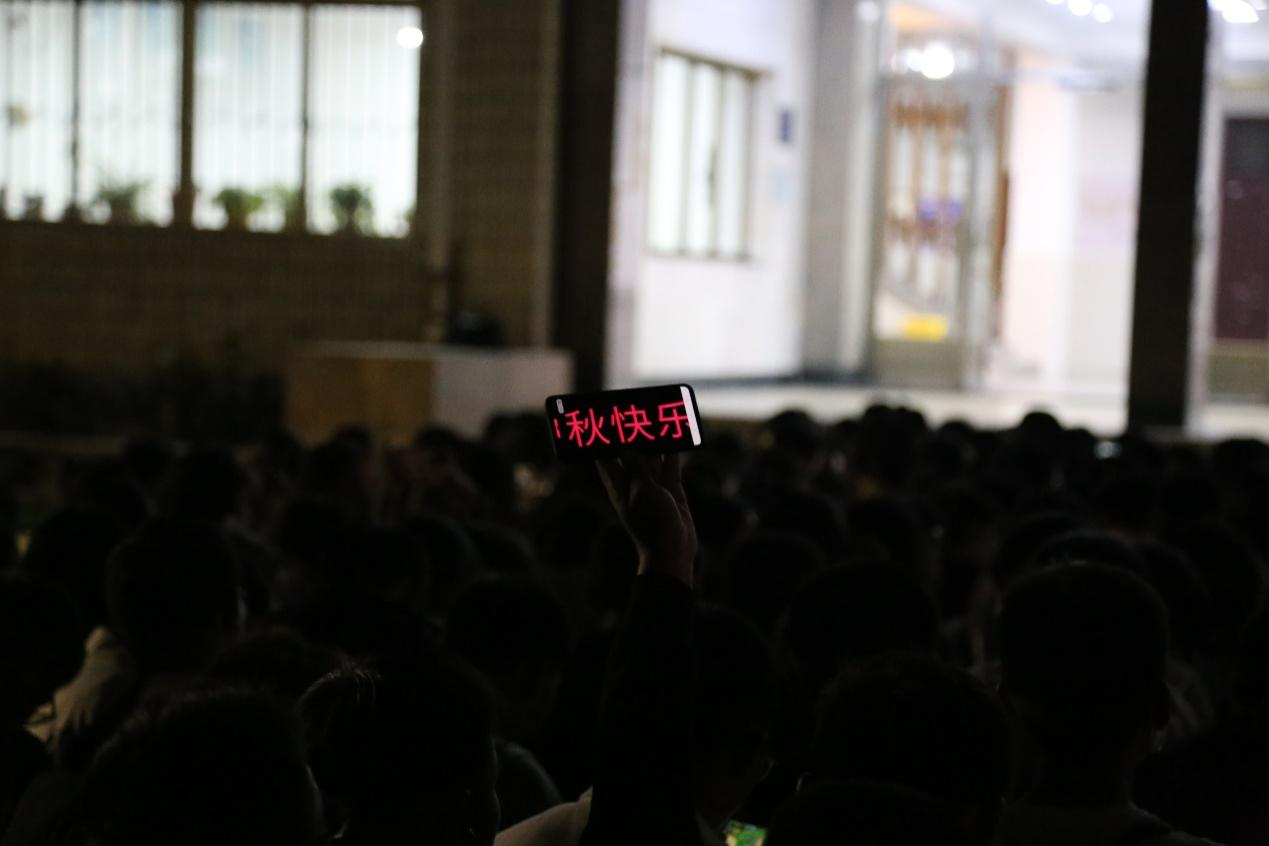 系楼前广场,师生齐聚一堂,共赏人间月圆。