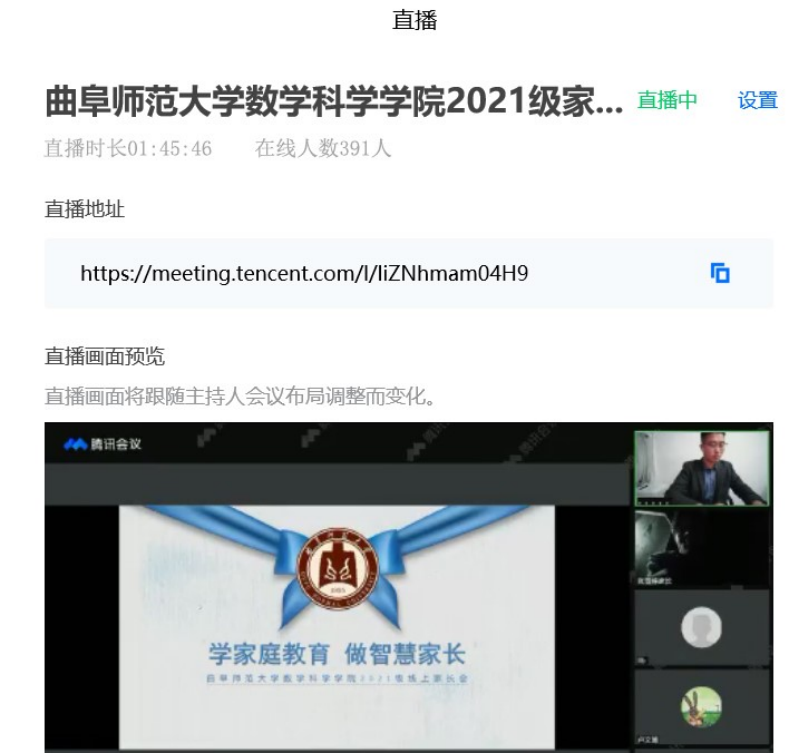 2021级以腾讯会议直播的方式在数学楼311举行了线上云家长会。家长会由2021级辅导员高思明、吕瑞源主讲,注册送彩金