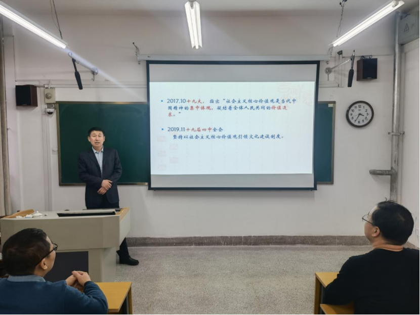 宋国栋从新时代社会主义核心价值观的价值定位、新时代社会主义核心价值观的深刻内涵、新时代培育践行社会主义核心价值观的着力点三个方面向同学们阐释了新时代培育和践行社会主义核心价值观的重要性和必要性。他鼓励同学们把培育和弘扬社会主义核心价值观和加强党史学习教育融入到自身的学习生活中去,学思践悟、入脑入心,继承和发扬中华优秀传统文化和传统美德,立大德、明大德、成大才、担大任,努力成为堪当民族复兴大任的时代新人。