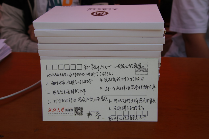 心理指导老师韦宁表示:“讲座式、课题式的心理指导方式对同学们的触动感往往较弱、指导的实效性不高,如何真正让同学们正视心理问题,找到可倾诉对象是大学生心理指导的难点重点。因此此次尝试用轻松化、年轻化的盲盒方式准备心理锦囊,以校园明信片为媒,与同学们对话。”