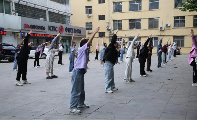 学子认真做好每一个动作,注重细节,体操队伍整齐划一,充满生机与活力,展现了注册送彩金