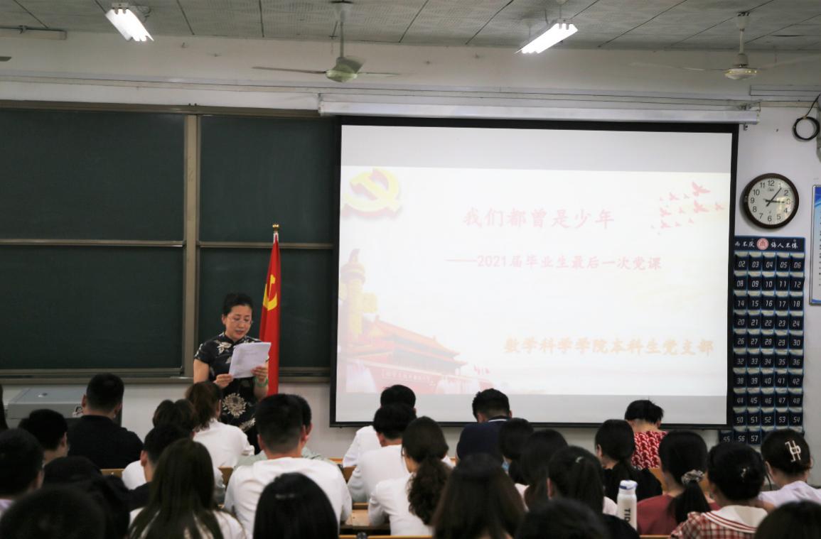 于数学楼201室组织了2021届毕业生最后一次党课。党委副书记曲凤东,本科生党支部书记朱伟卫、支部副书记杜晨曦、青年委员徐腾飞、宣传委员荣斌、学习委员韦宁、组织委员高思明出席本次活动,注册送彩金