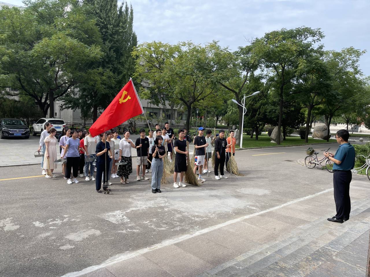 党委副书记曲凤东和本科生党支部朱伟卫老师召集大家集合并进行任务的明确分工。曲凤东强调,新学期到来,本科生党支部的这次特殊形式的主题党日,是一次很好的“我为群众办实事”的具体行动,希望全体党员牢记党员意识,充分发挥自己在学习、工作和生活中的先锋模范作用。